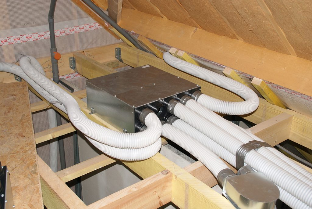 Le système de ventilation a pour mission l’évacuation de l’air vicié, de la chaleur, de l’humidité et du CO2 (provenant du chauffage et de la respiration) et garantit l’apport d’oxygène venant de l’extérieur.